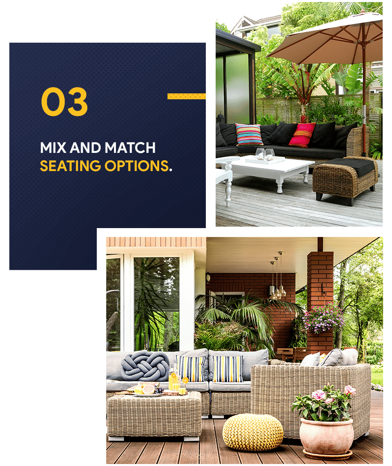 You’ve got more choices than ever, and everything could potentially add some style to your patio. It’s also great if you love collecting individual pieces of furniture or if you just want a homey, vintage look. Just make sure to arrange the pieces and patterns in a way that they won’t look cluttered.