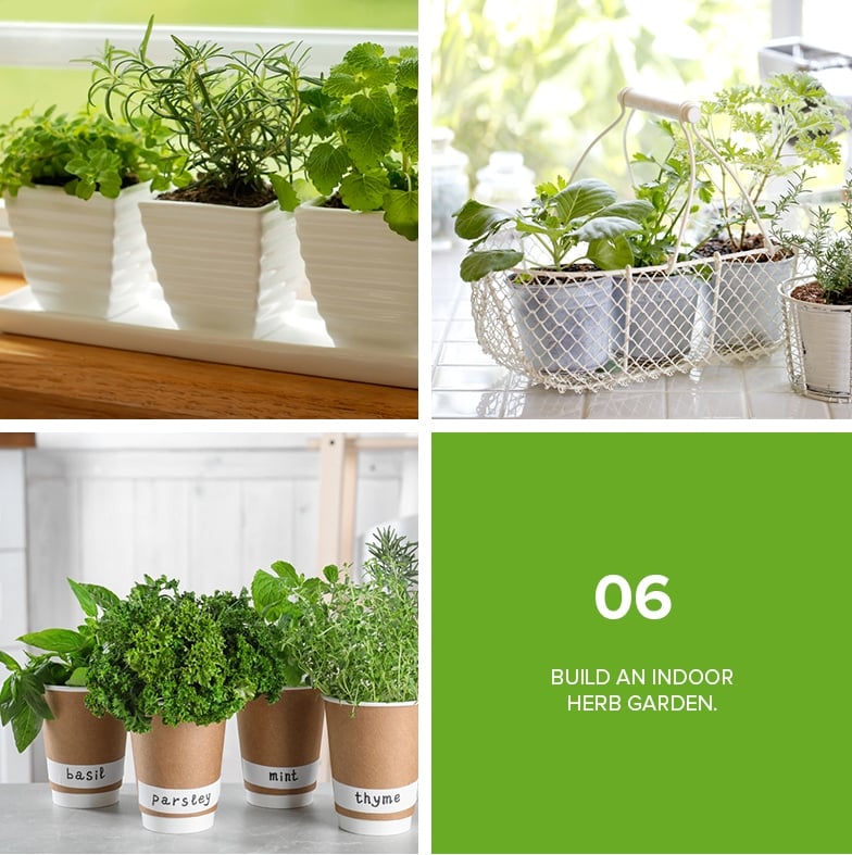 Bring the pleasure of cooking with fresh herbs straight to your kitchen by growing your own indoor garden. The beauty of this is, even if you have limited outdoor space or have no room for a vegetable garden, you can incorporate plant decor while filling your home with the calming and fresh-smelling scents of herbs. Try planting basil, rosemary, mint, parsley, and thyme in small pots or even mason jars, and then mount them on black wooden boards that you can lean against your kitchen cabinets. You can also use individual planters that will add another pattern to your kitchen wall. This way, your plants will not only serve as cooking aides but also as wall art. Plus, those herbs mentioned above are just some of your best choices for your indoor garden since they don't grow too wide or tall.