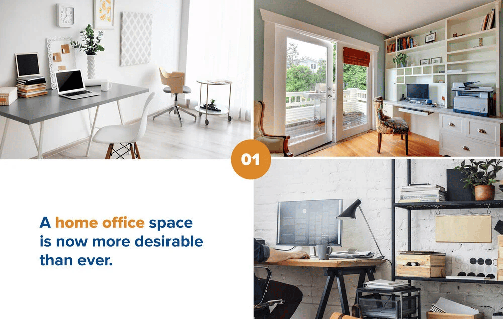 So whether it’s a full-fledged room or just a dedicated work area with ample electrical outlets, space for computer and other office necessities, built-in bookshelves, or a quiet atmosphere, highlight those characteristics when listing your home for sale.